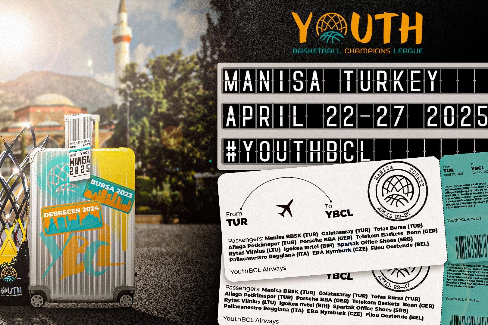 FİBA Gençler Basketbol Şampiyonlar Ligi finallerinin Manisa’da düzenlenmesi için yapılan başvurunun onaylandığını anımsatan Başkan Zeyrek, 20-27 Nisan tarihleri arasında Türkiye'den takımların yanı sıra Almanya, Litvanya, Belçika, İtalya, Sırbistan, Çekya ve Bosna Hersek’ten gelecek 12 takımın da Manisa’da ağırlanacağını söyledi.