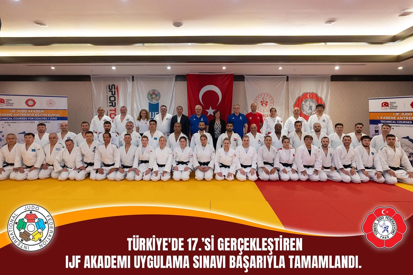 Uluslararası Judo Federasyonu (IJF) Akademi'nin düzenlediği ve dünya genelinde 110. kez yapılan 1. Seviye uygulama sınavı, Türkiye Milli Olimpiyat Komitesi'nin (TMOK) desteğiyle İstanbul'da başarıyla tamamlandı. Bu önemli etkinlik, IJF Akademi Yöneticileri Envic Galea ve Tibor Kozsla, IJF Hakem Komitesi Başkanı ve IJF Akademi Uzman Yetkilisi Daniel Lascau, ve diğer IJF Akademi Uzmanları Mesut Kapan, Daniela Krukower, Slavisa Bradic ve Mikishi Yashihiro ile IJF Akademi Türkiye Bölge Eğitim Merkezi Koordinatörü Kaya Gezeker'in gözetiminde gerçekleştirildi.