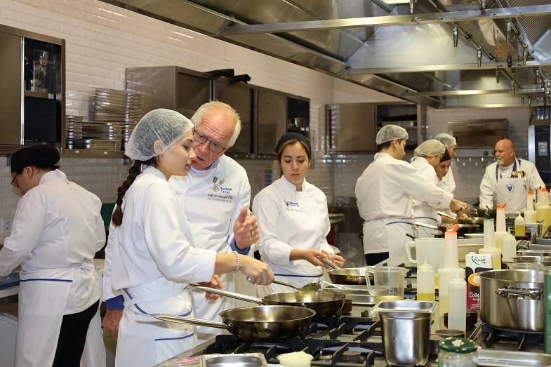 İZMİR (İGFA) - Ege İhracatçı Birlikleri’nce ABD’ye gıda ihracatını artırmak için 5 yıldır başarıyla sürdürülen Turkish Tastes isimli TURQUALITY Projesi kapsamında Amerikalı şefler Reimund Pitz ve Jay Marshall, Türkiye’de lezzet noktalarını ziyaret etti, Yaşar Üniversitesi Gastronomi Bölümü öğrencileriyle muftağa girdi.