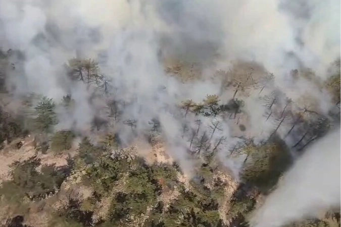 Yangına havadan ve karadan müdahale eden ekipler, alevlerin yayılmasını önlemek ve bölgeyi korumak için yoğun çaba sarf ediyor.