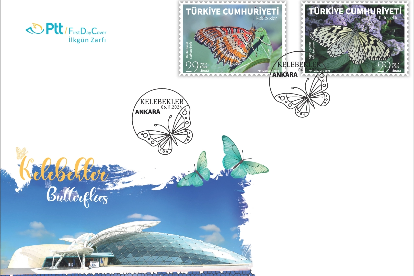 Söz konusu filatelik ürünlerin satışı ile aynı tarihte PTT Pul Müzesi Hacı Bayram Mah. Atatürk Bulvarı No:13 Ulus Altındağ/ANKARA adresinde "Kelebekler 06.11.2024 ANKARA" ibareli ilkgün damgası kullandırılıyor.