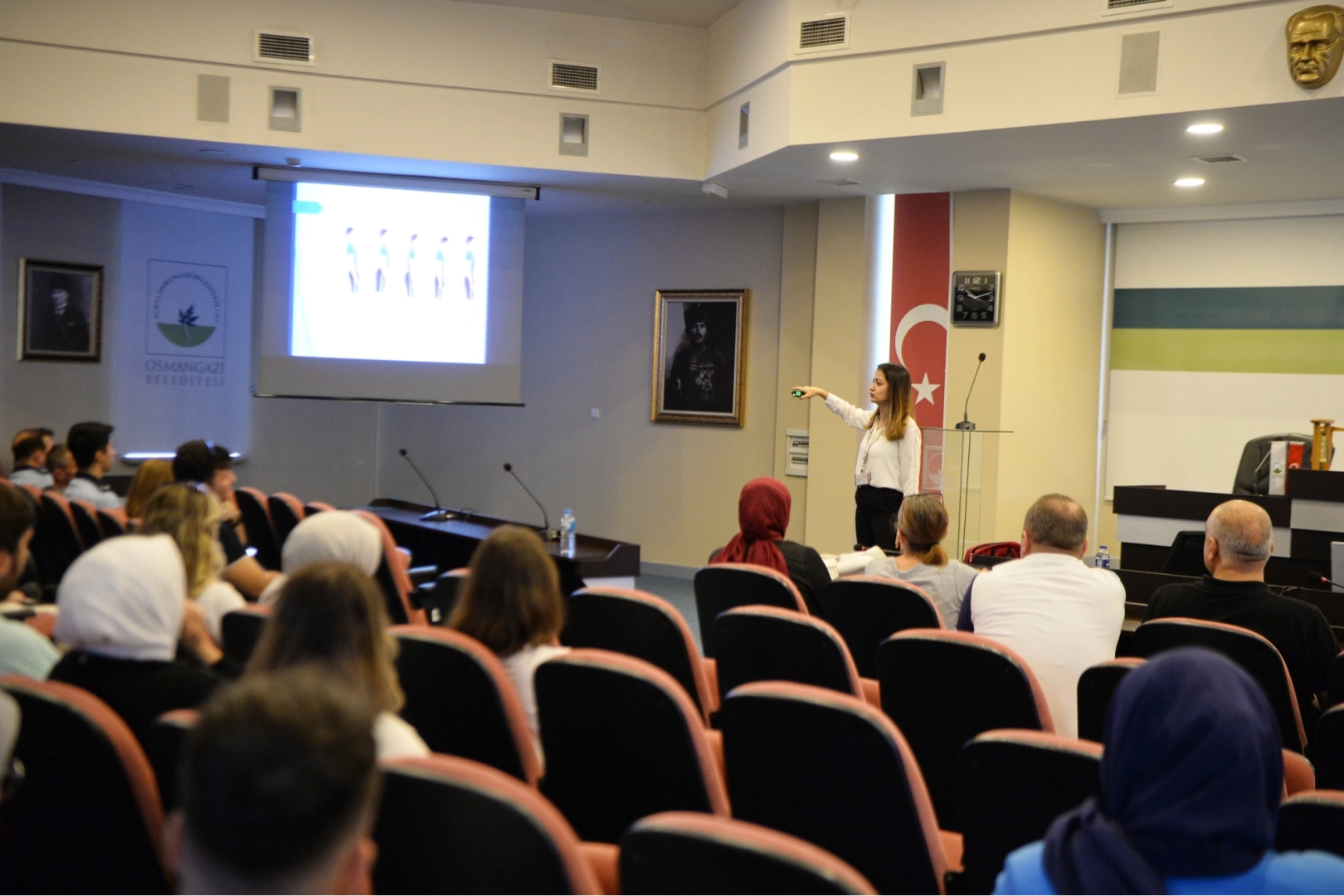 BURSA (İGFA) - Osmangazi Belediyesi, çalışma ortamında ergonomik şartların sağlanması, personelin iş veriminin ve memnuniyetinin attırılması, uzun vadede baş gösteren iş hastalıklarının önlenmesi ve sağlıklı beslenmenin sağlanması amacıyla Bursa İl Sağlık Müdürlüğü işbirliğiyle Sağlıklı Beslenme ve Ofis Ergonomisi eğitimi gerçekleştirdi. Osmangazi Belediye Meclis Salonu’nda gerçekleştirilen eğitime personel yoğun bir katılım gösterdi.