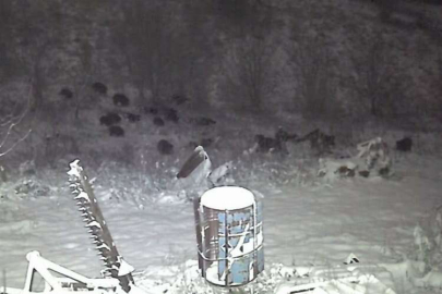 Bozcaarmut Köyü'ne 2,5 kilometre uzaklıkta Kırıklık Mevkii'nde bulunan bahçesindeki kameralardan kar yağışını seyretmek isteyen emekli öğretmen Ali Özer, bahçesinde avcılardan kaçan domuz sürüsünü gördü.